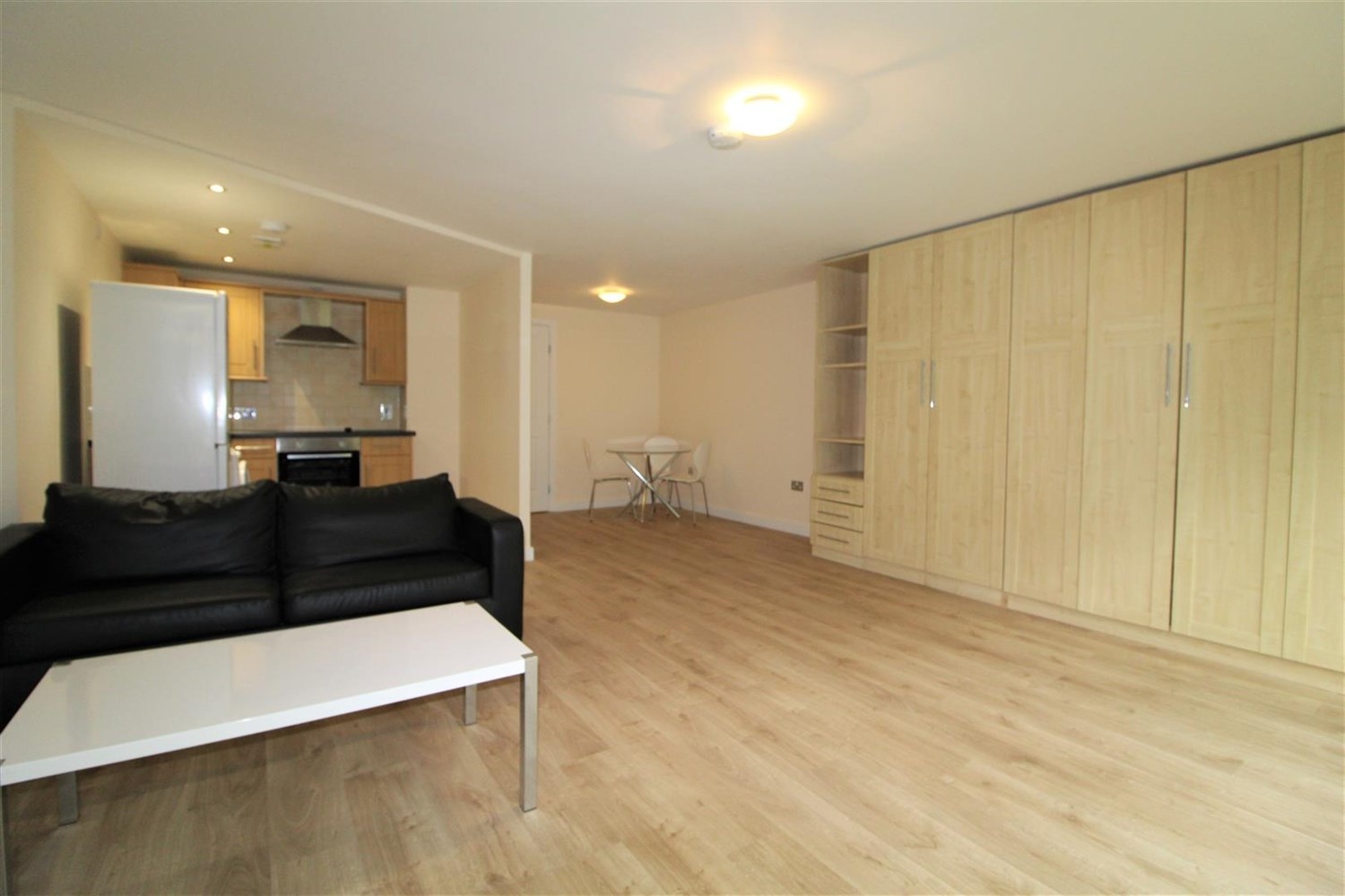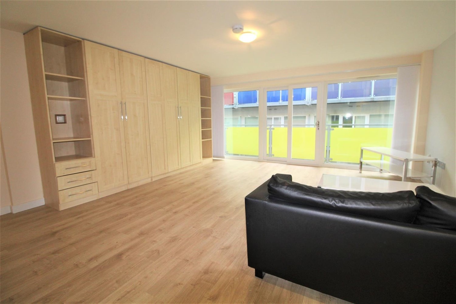 Large open space with access to balcony, Bedroom area has a large built in cupboard where the double bed can be stored away. Kitchen area is fitted with a range of wall and base units with worktops over, stainless steel sink with mixer tap, Part tiled.