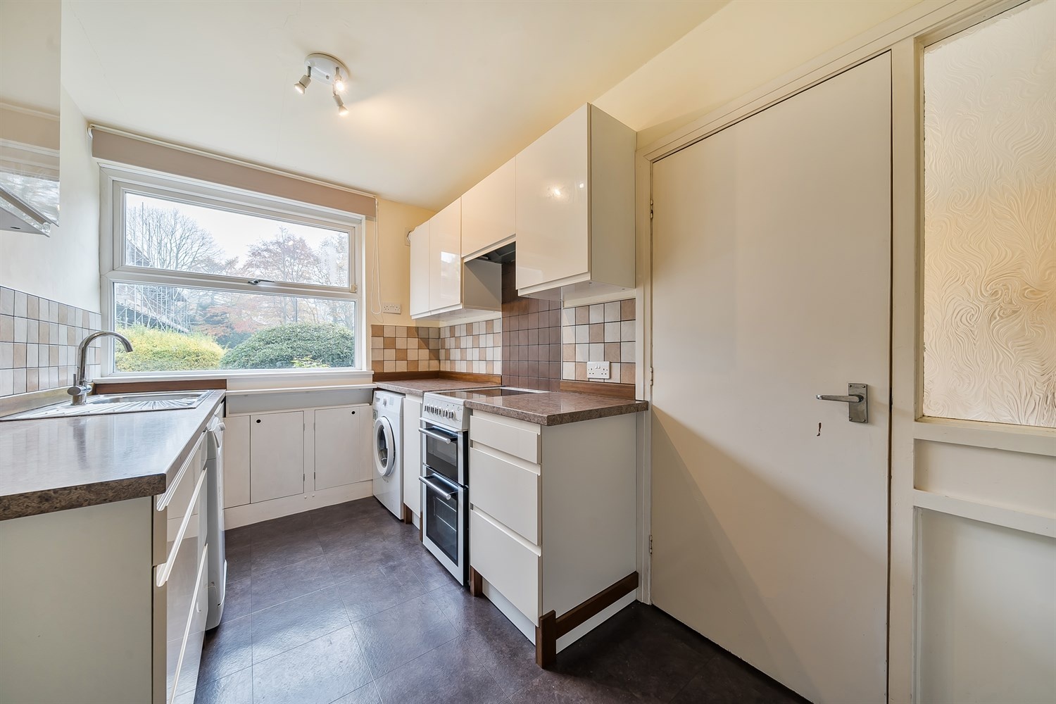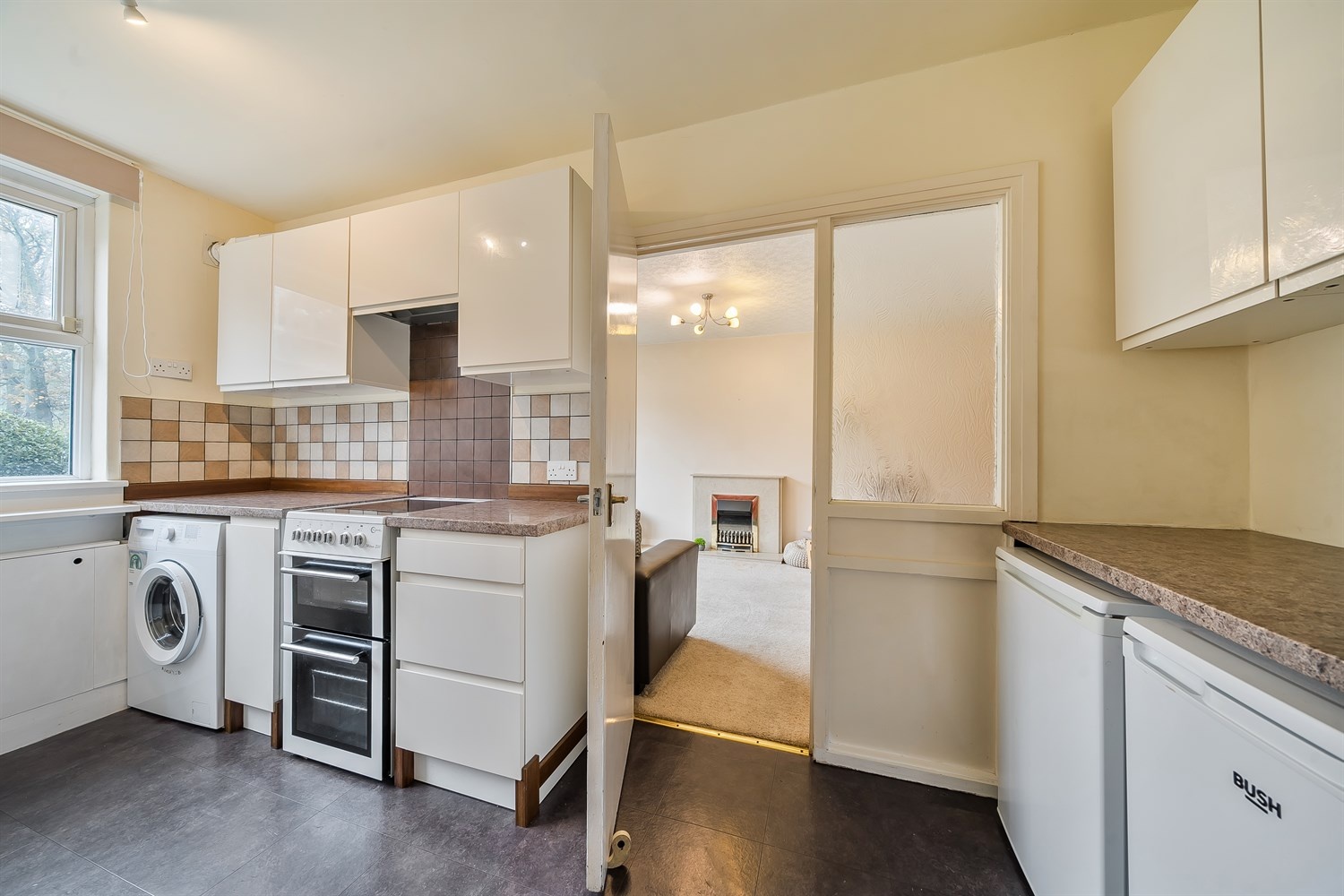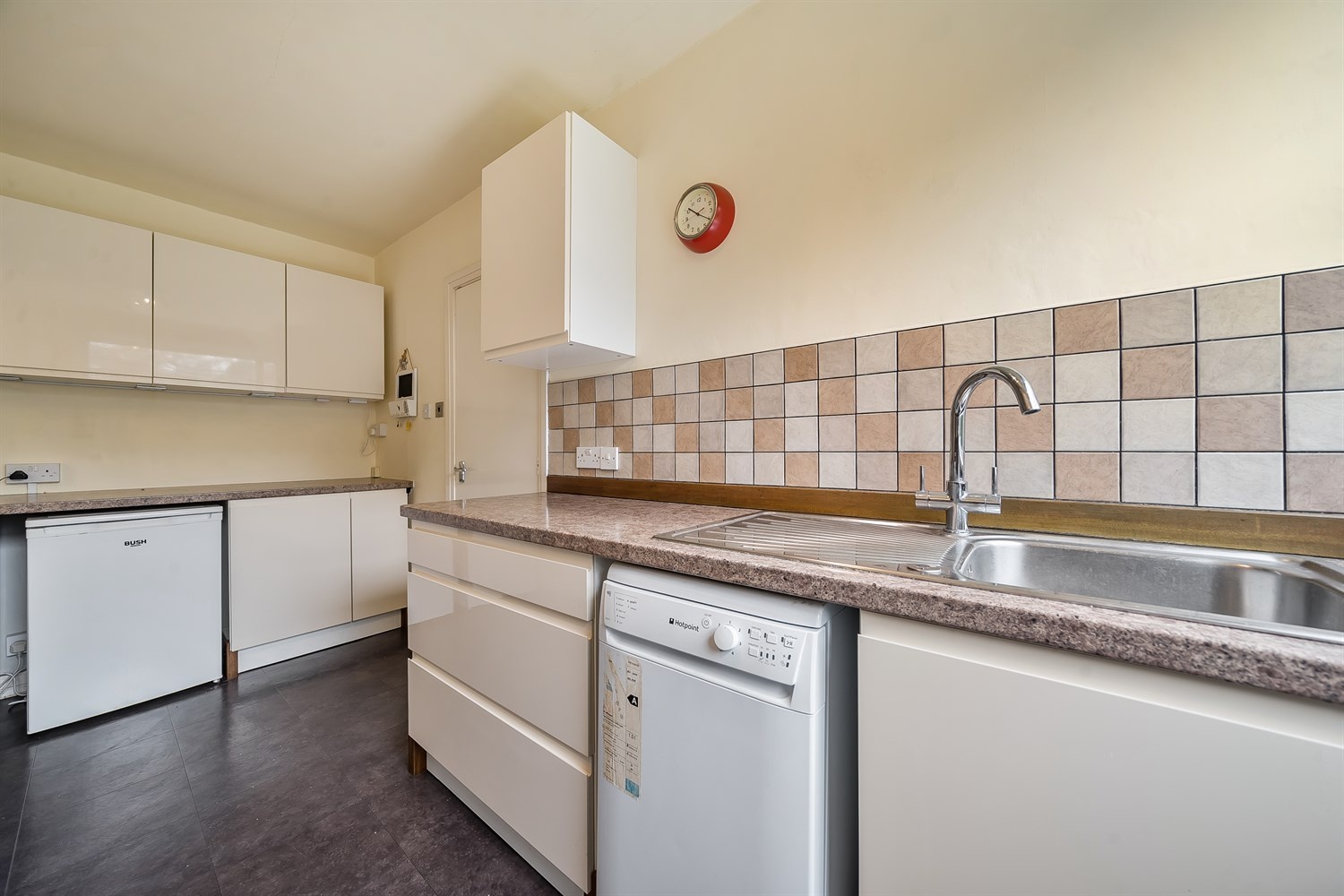Fitted with a range of wall, base and drawer units with worktops over. Stainless steel sink with mixer tap and drainer. Space for dishwasher, washing machine, fridge and cooker. Double glazed window to front. Part tiled walls.
