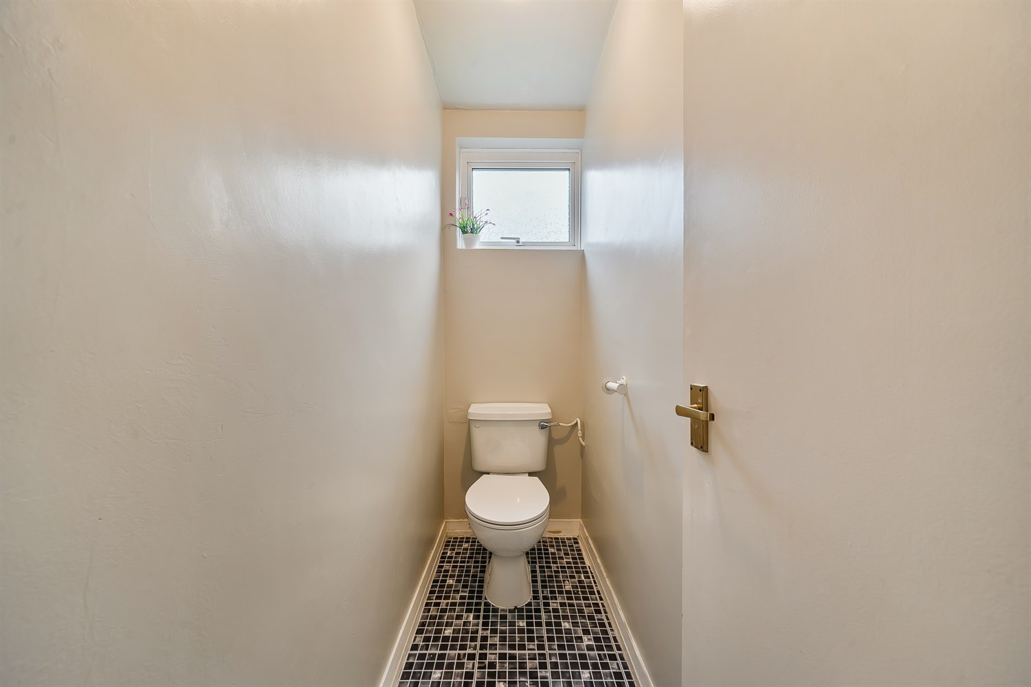 Fitted with a two piece suite comprising bath with shower over and WC. Tiled walls.