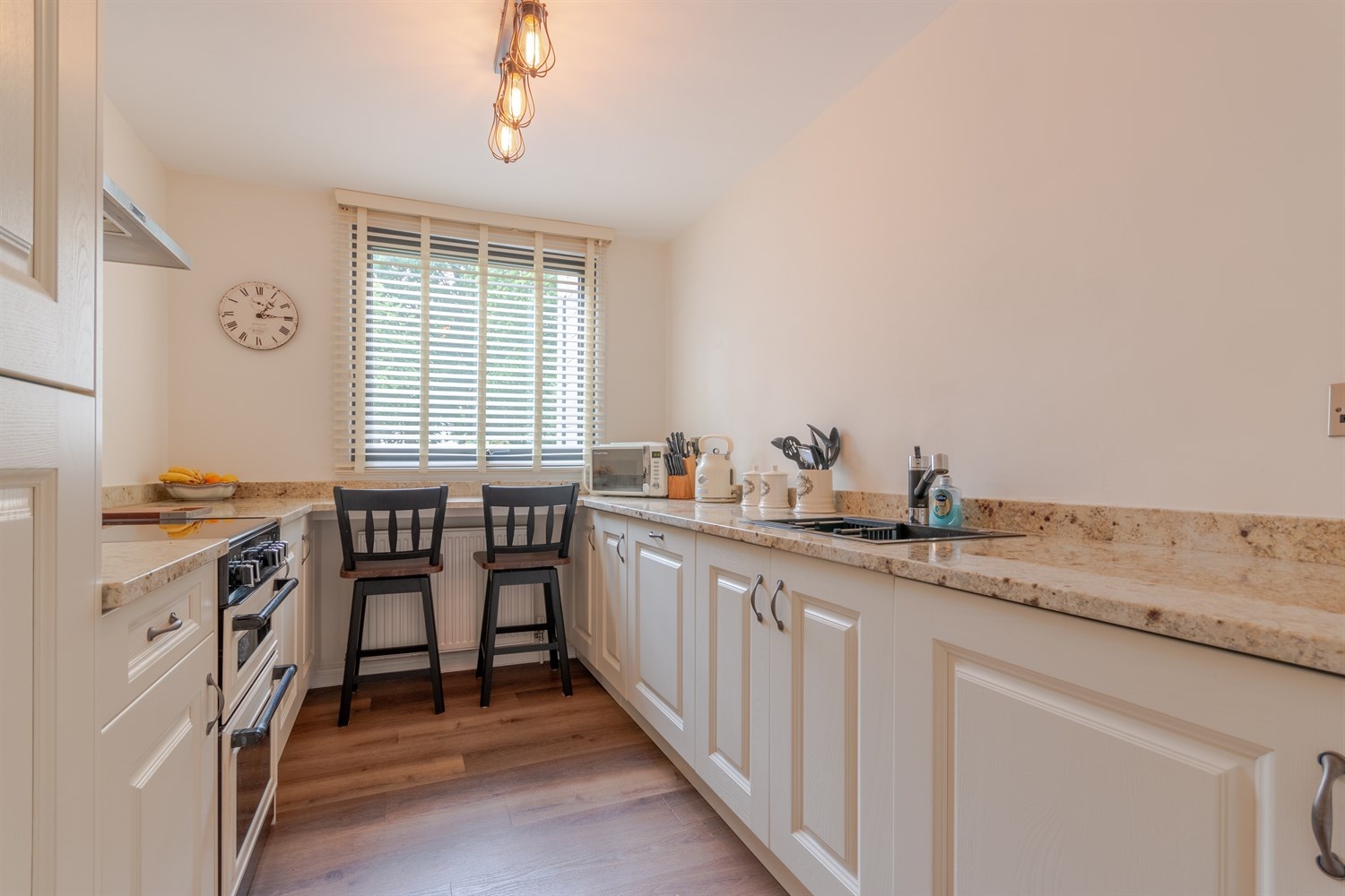 Newly fitted kitchen. Fitted with a range of wall, base and drawer units with granite worktops over. Breakfast bar. Freestanding oven with extractor hood over. Integrated fridge, freezer and dishwasher. Sink with mixer tap. Electric radiator. uPVC double glazed window.