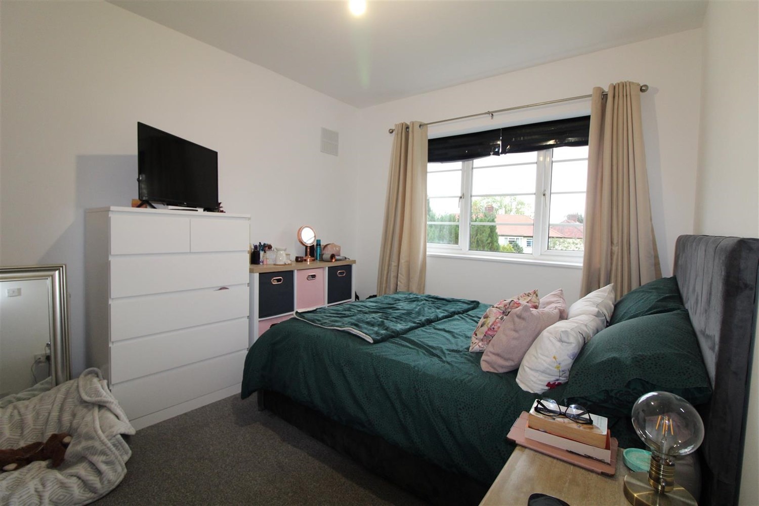 Double bedroom with gas central heating radiator, large window to the front.