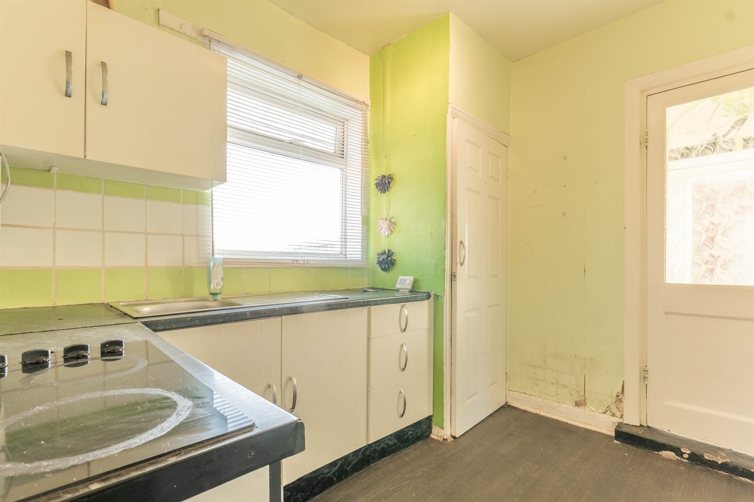 Fitted with a range of wall, base and drawer units with worktops over. Stainless steel sink with mixer tap and drainer. Double glazed window to rear. Part tiled walls. Store cupboard.