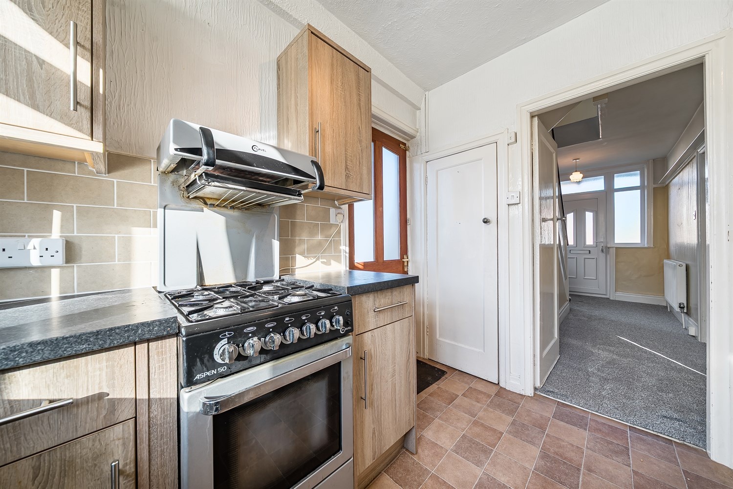 Fitted with a range of wall, base and drawer units with worktops over. Space for cooker, washing machine and fridge/freezer. Stainless steel sink with mixer tap and drainer. uPVC double glazed window to rear. Gas central heating radiator. Under stairs storage cupboard.